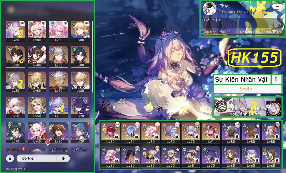 Phainon E1S1, Cyrene E1S1 + Dahlia, Tribble. Acc Đã Lệch Banner Nhân Vật 5 Trang