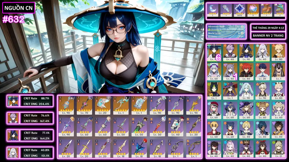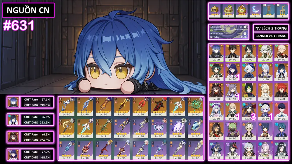AC VIP gần full char neu c6 cùng đồng bọn đày đủ char meta cho ae chờ colombia nữa là hết nuoc chấm