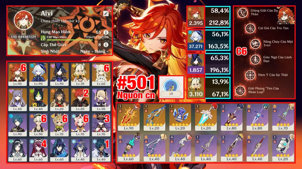 navia trấn + xilonen + lauma + ei + citlali + nahida +durin