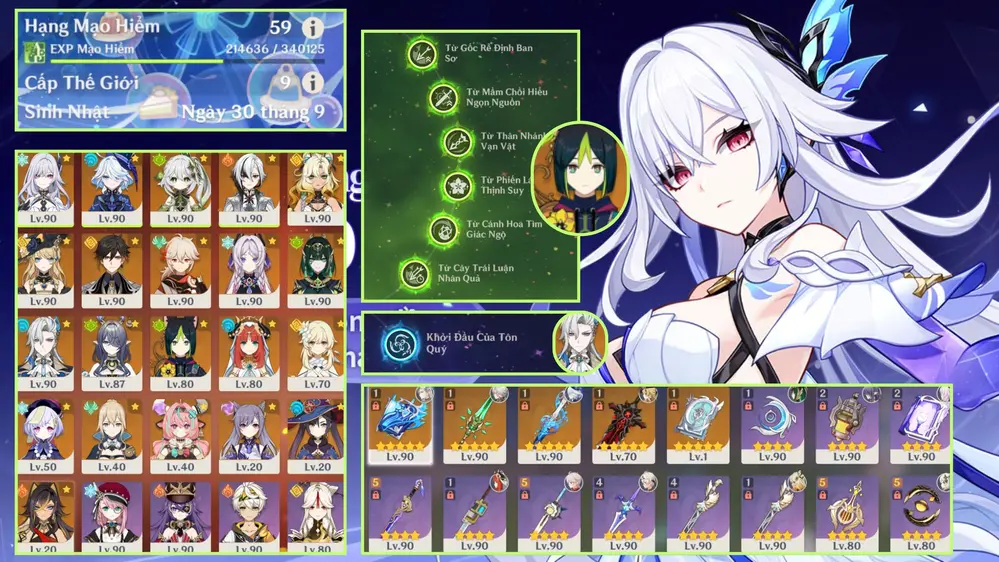 zibai + mavuika + neuvilette giát vàng + skirk giát bạc - banner nv lệch 4 trang cho ae cày lấy escosffie ( nguồn cn - thẻ tháng 8 ngày từ 17/3 )