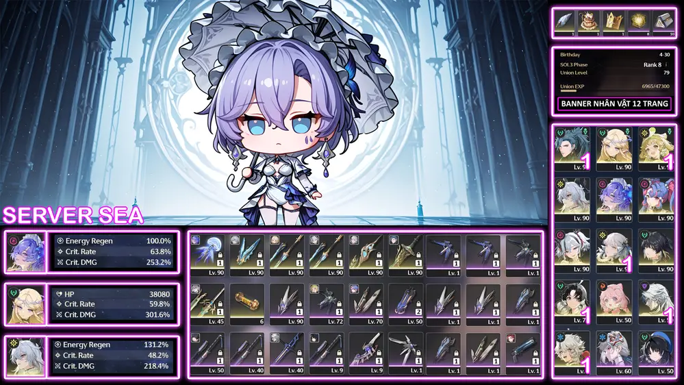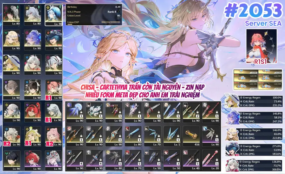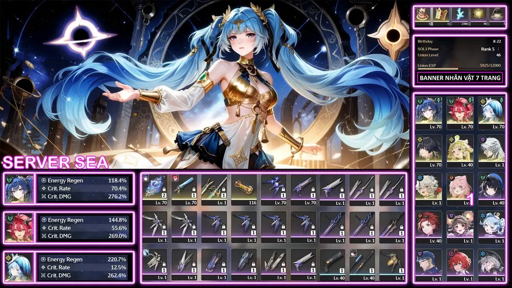 [#HH-570 SEA VIP HOTMAIL] CHISA TRẤN + CARTETHYIA R1 TRẤN + JINHSI R1 TRẤN + PHOEBE TRẤN + CAMELLYA TRẤN + YAO TRẤN ZANI + AUGUSTA TRẤN LONG + CIACCONA + CHANGLIN+ VERINA R3 CÒN NHIỀU TÀI NGUYÊN + Bảo Hiểm Nhân Vật + 100 San Hô