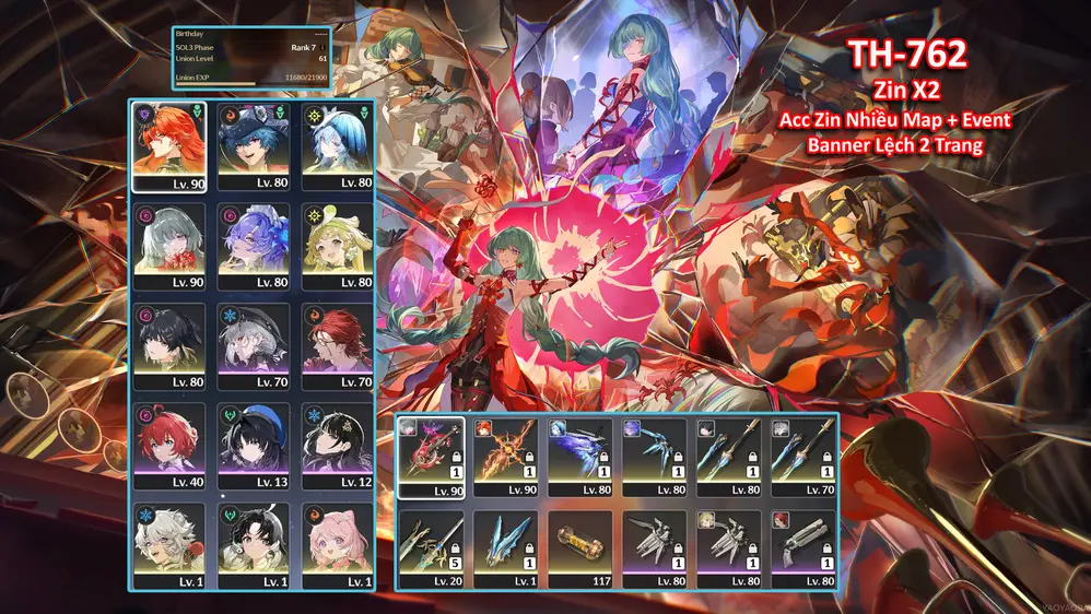 [Siêu Phẩm Nhiều Char Meta + Banner Lệch + 2x Roll + Banner sau lấy Iuno Là Được 2 Team Vip Meta ] TH-762 Augusta (Trấn) + Phrolova (Trấn) + Shorekeeper (Trấn) + Cantarella (Trấn Thường) + Brant (Trấn Thường)