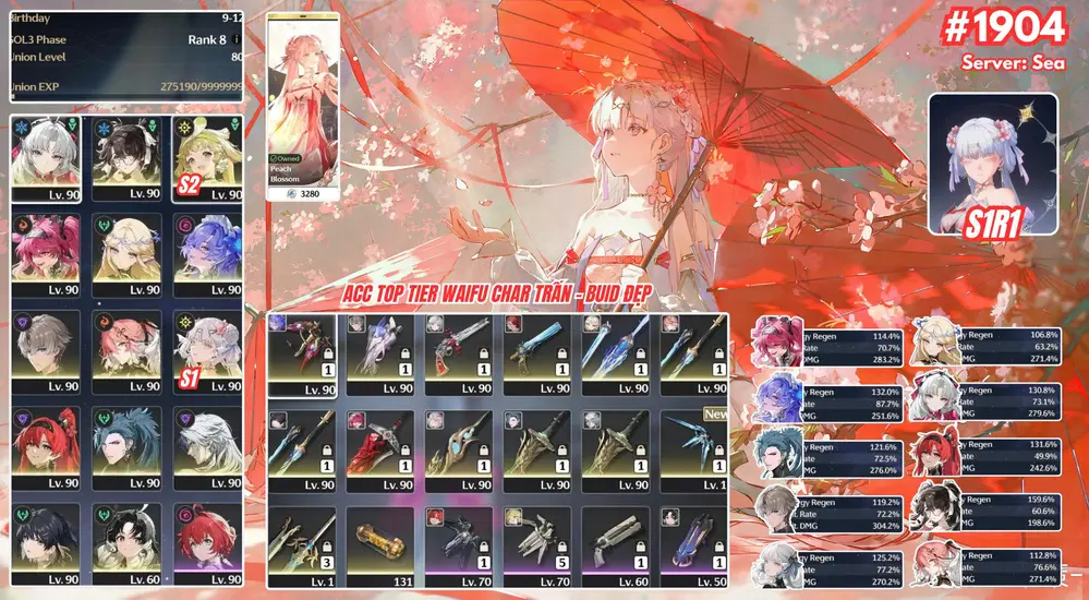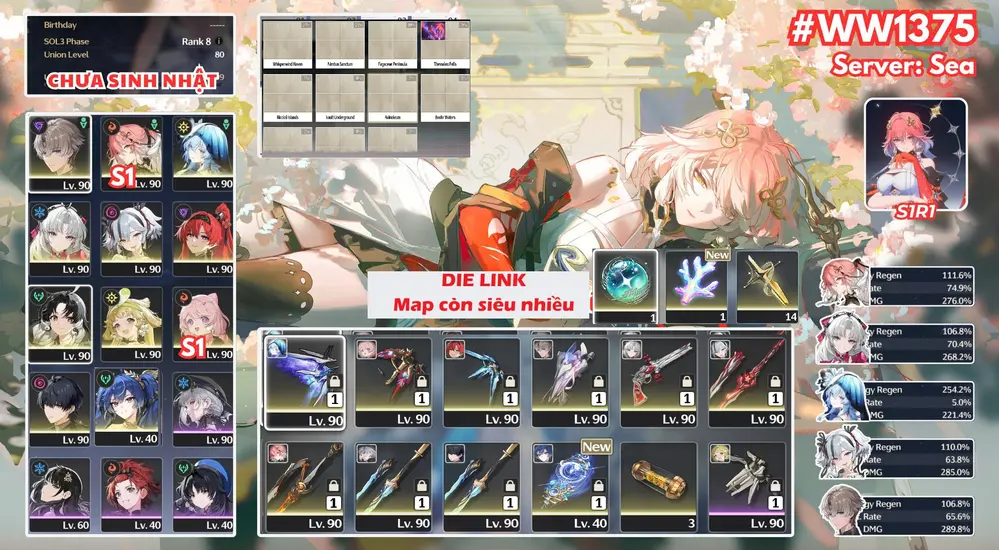 [ ACC VIP HẠT DẺ NHIỀU CHAR TRẤN CÒN TÀI NGUYÊN ] WW1375 Changli R1a1 + Yinlin Trấn + Yao Trấn + Carllota Trấn + Camellya Trấn + Iuno Trấn + Shoe Trấn Die link