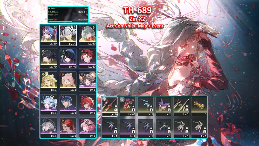 [Siêu Phẩm nhiều team META S Banner Lệch ] TH-634 Cartethyia (Trấn) + Ciaccona + Jinhsi (Trấn) + Zhezhi + Shorekeeper + Zani (Trấn) + Phoebe (Trấn) + Roccia + Carlotta (Trấn) + Camellya (Trấn) + Yilin + Xiangli Yao + Nhiều Event + map + Qùa trờ về