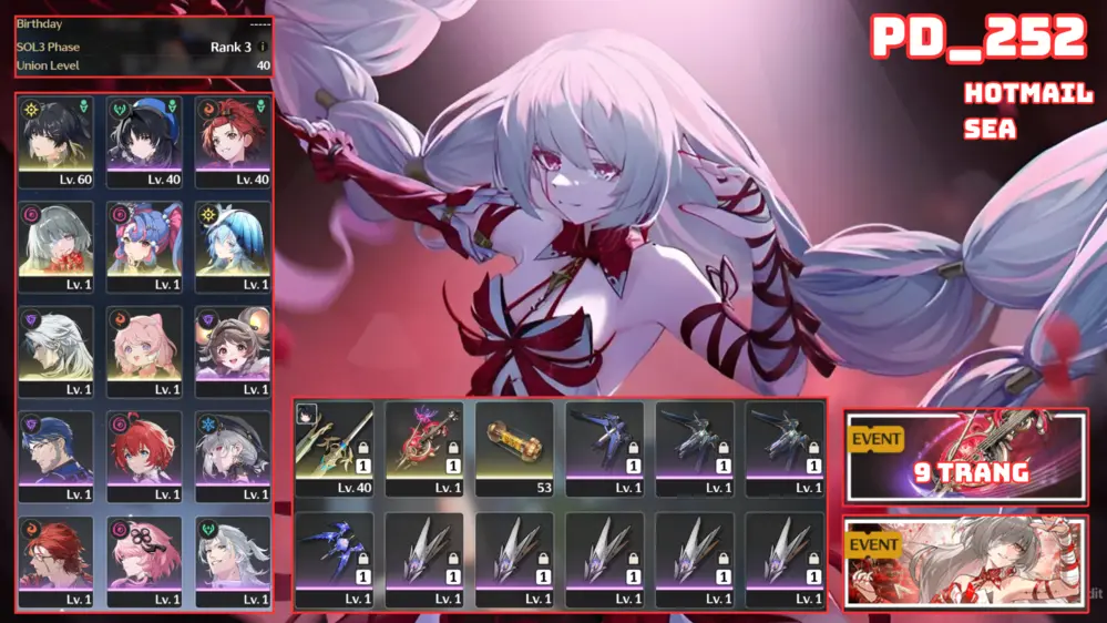 [ PD_296 SIÊU PHẨM ÁNH DƯƠNG TUẾ NGUYỆT ] LUNO R3 TRẤN + JIYAN+ VERINA R1 + MAIN TRẤN CÒN NHIỀU QUEST / EVENT!!