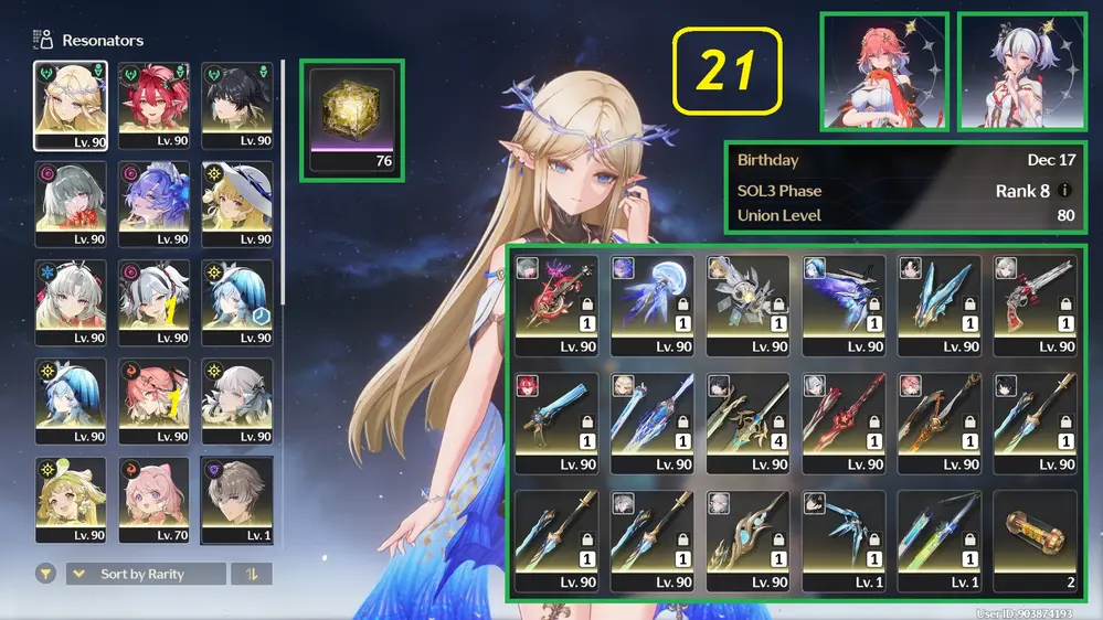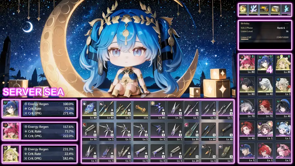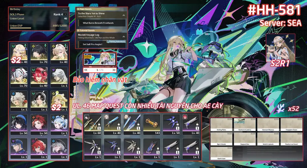 [#HH-581 SEA] LYNAE + CARTETHIYA (S2) + CIACCONA + VERINA (S2) + CALCHERO + LINGYANG + JIANXIN + Bảo hiểm nhân vật