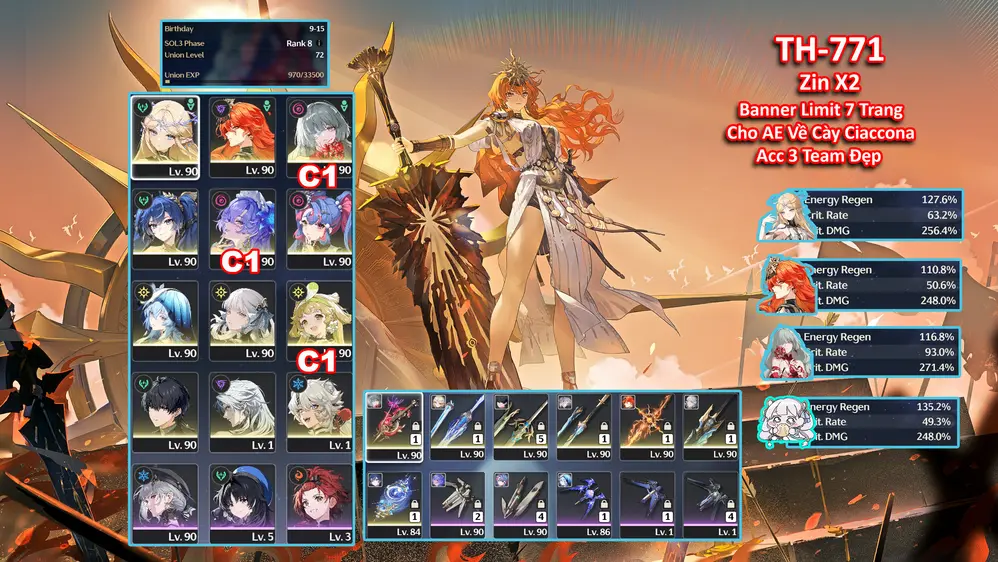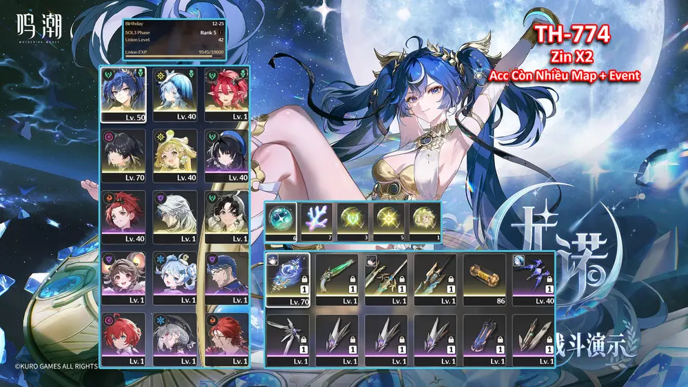 [Siêu Phẩm ] TH-774 Iuno ( Trấn) + Ciaccona (Trấn) + Shorekeeper + Verina C1 + 2x Roll