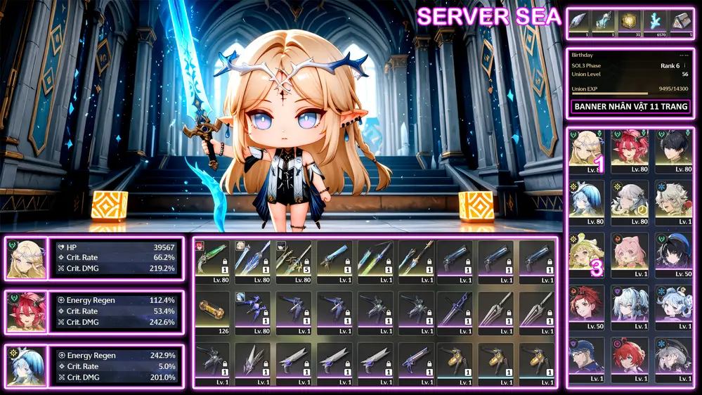 [ PD_357 ACC KHỞI ĐẦU TÍCH ROLL CHỜ LẤY AEMEATH ] LYNAE TRẤN + MORNYE TRẤN + VERINA + JIANXIN. 13 K GEM. 41 SỪNG. ACC CÒN NHIỀU TÀI NGUYÊN !!!!!