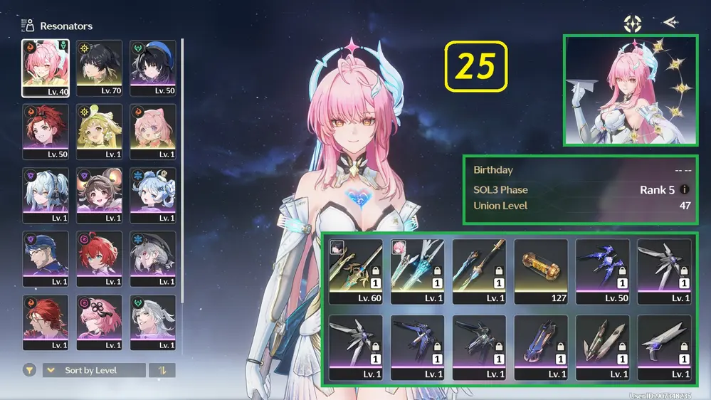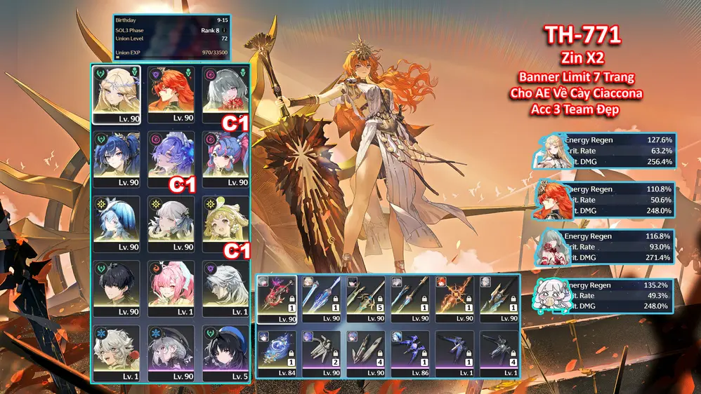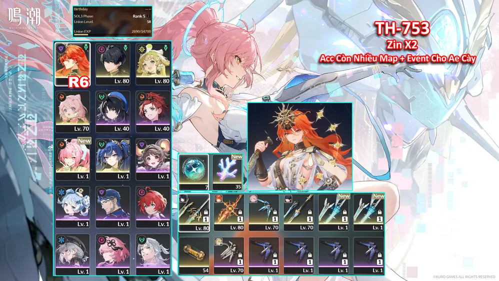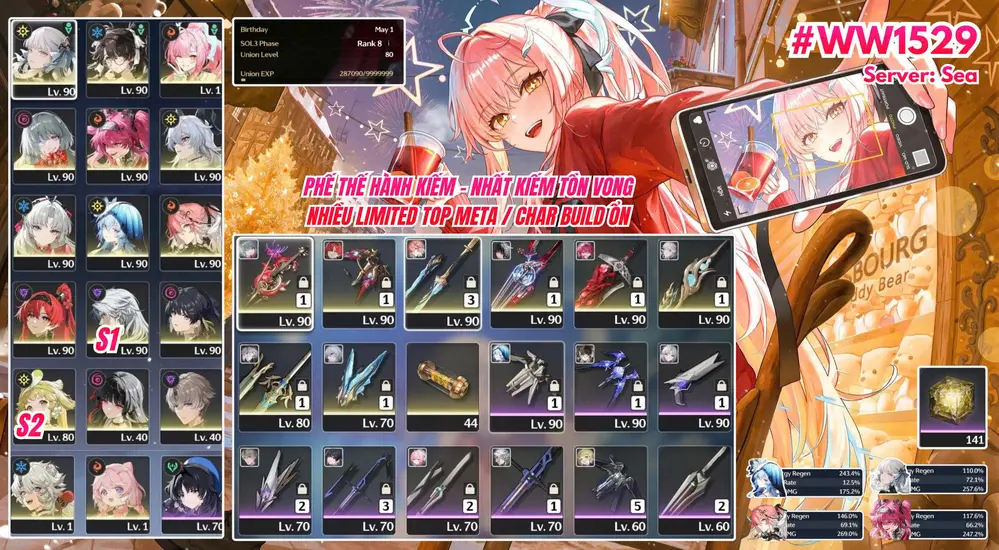 [ ACC VIP ] WW1537 Galbrena R4A1 + Lupa R0A1 + Aemeath R0A1 + BẢO HIỂM