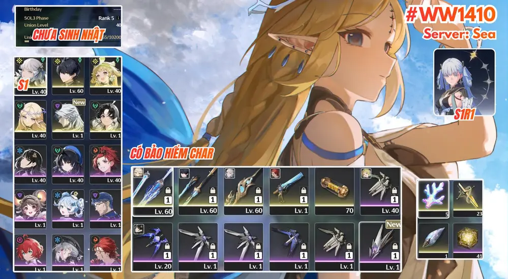 [ ACC VIP ] WW1410 Jingshi r1 trấn + CARTETHYIA R0A1 + Có bảo hiểm char