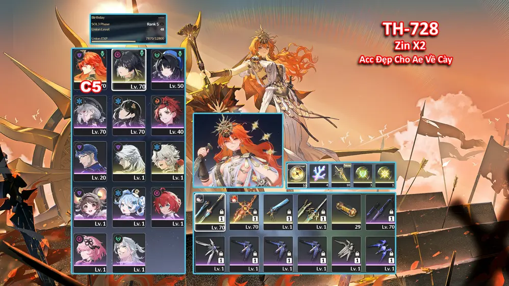 [Siêu Phẩm ] TH-728 Augusta C5 (Trấn) + Calcharo + Lingyang + Main (Trấn) + Còn 3x roll vàng cho ae về cày C6