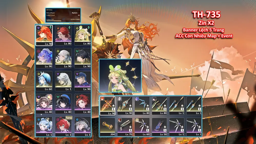 [Siêu Phẩm Banner Lệch + 2x Roll Vàng ] TH-730 Cartethyia (Trấn Thường) +Brant (Trấn) + Shorekeeper (Trấn) + Changli (Trấn) + Zani + Phrolova (Trấn) + Verina (Trấn) + Calcharo + Encore + Lingyang + Jianxin + Nhiều Map + Event