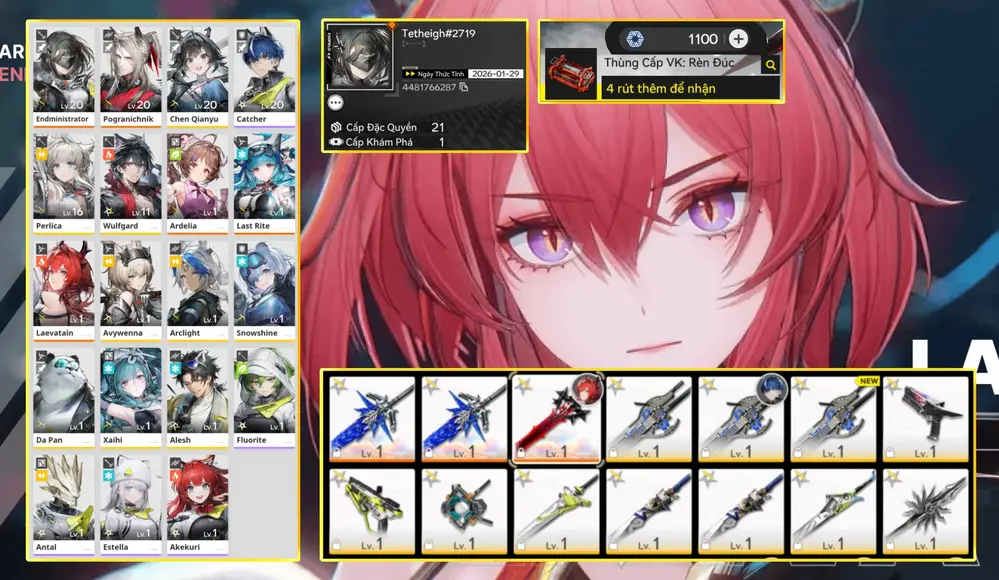[ ACC VIP SIÊU PHẨM SIÊU ĐỈNH ] AK 94 Laevatain trấn + Gilberta ( Trấn tạm thời ) + + Pogranichnik + EMBER trấn + Ardelia Trấn + Main Trấn ( Siêu phẩm 7 char 8 TRẤN SIÊU ĐẸP )
