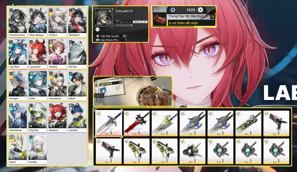 Leavatain trấn + Last rite + Pog + Ardelia + 2 weap 6 sao