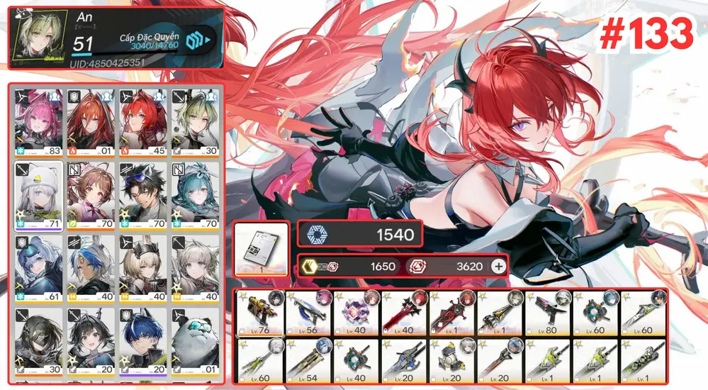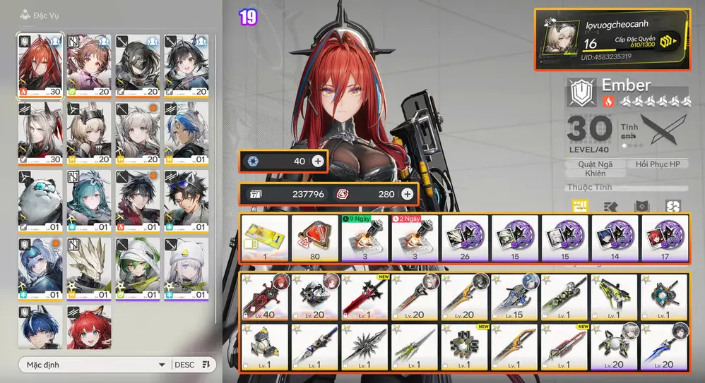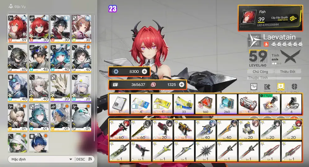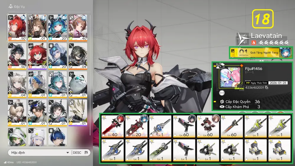 [ SIÊU PHẨM ĐỈNH CẤP ] AK 87 Yvonne ( Trấn tạm thời ) + Laevatain Trấn + Ember Trấn + Ardelia Trấn + Lifeng + 10 vé roll + 1540 vé roll Vũ Khí