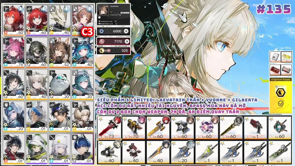 Siêu phẩm 2 Limit: Laevatain Trấn kẹp Gilberta/Last Rite Team đẹp giá rẻ cho ae trải nghiệm game