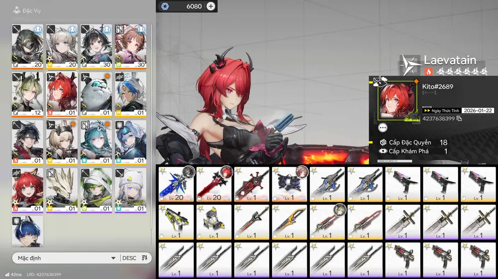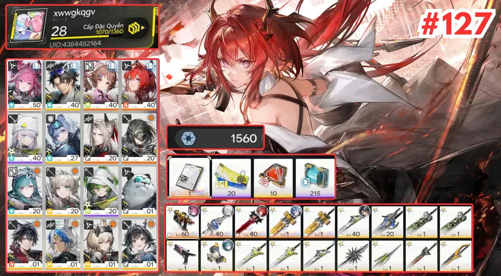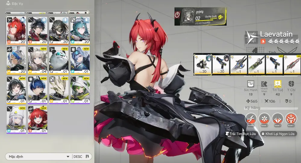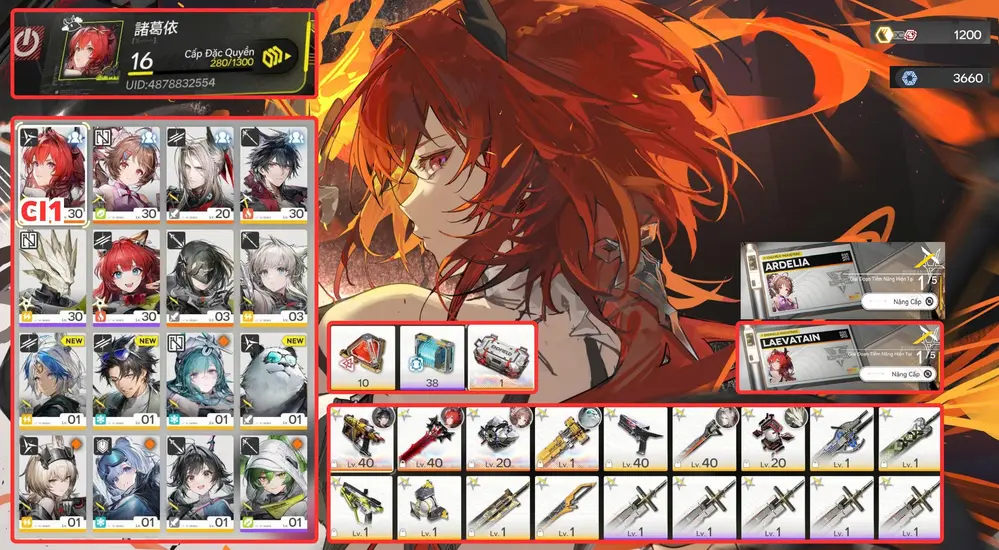 [ ACC VIP SIÊU PHẨM SIÊU ĐỈNH ] AK 84 Laevatain Cung mệnh 1 kèm trấn + EMBER + Gilberta + Ardelia + Main Trấn