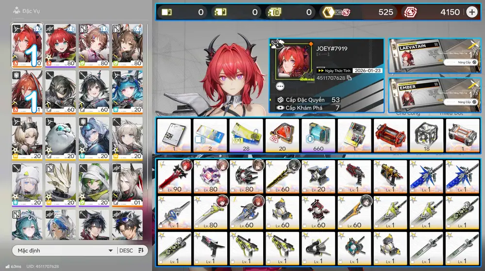 LAEVATAIN TRẤN - GILBERTA P1 TRẤN - LAST RITE TRẤN + NHIỀU VK + CHAR 6 SAO VIP