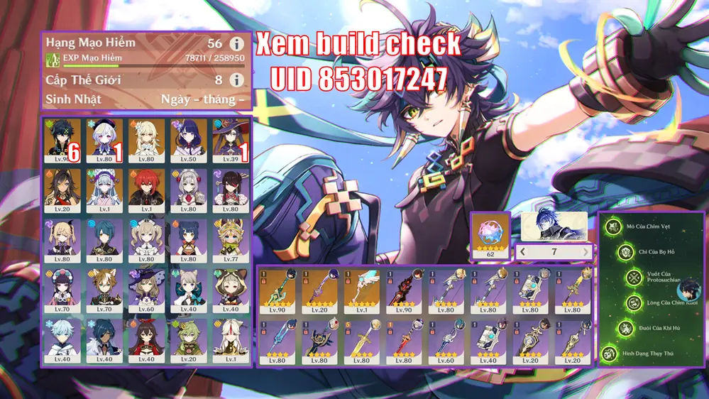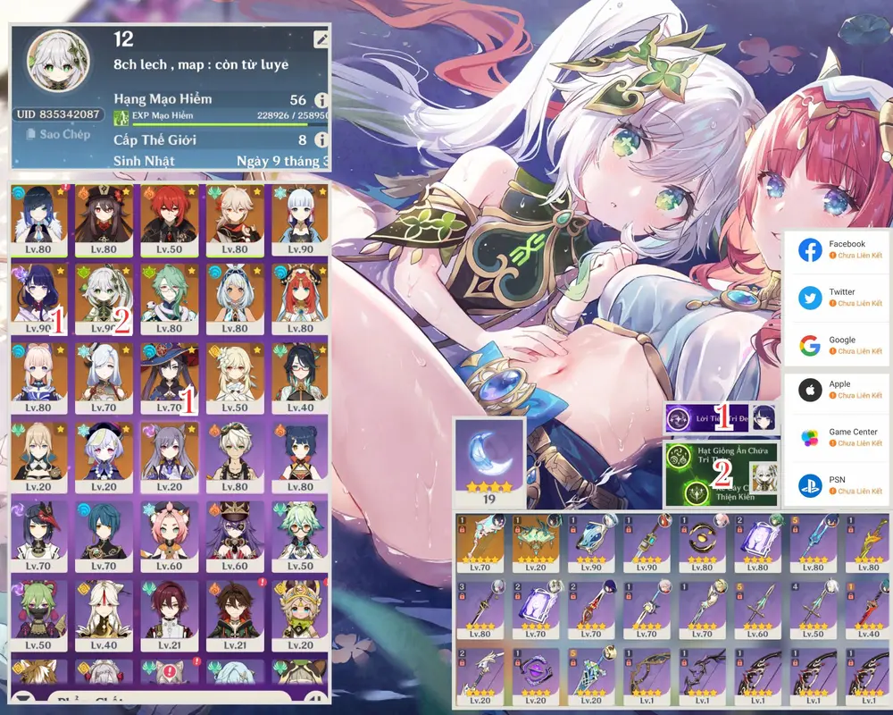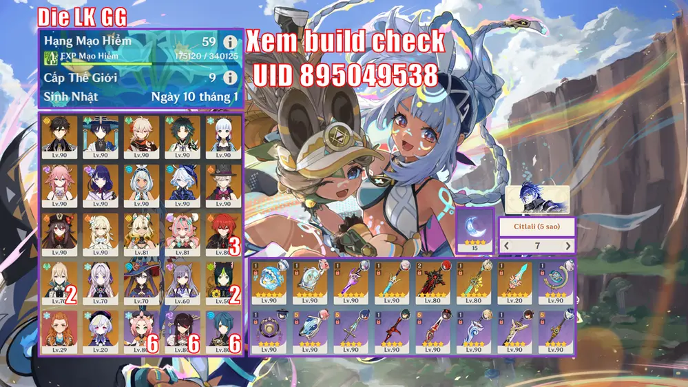 acc vip hutao trấn + ganyu trấn + wander trấn + ahai trấn + citali + sign + clo + fu + yea + kokomi + ayaka