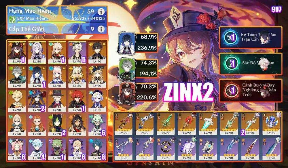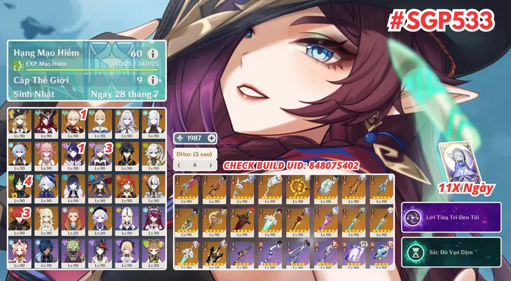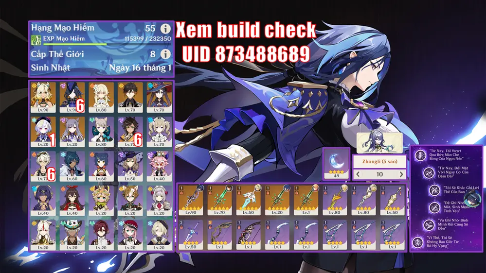 acc vip xiao trấn yelan trấn hutao trấn ayaka trấn skin clo trấn