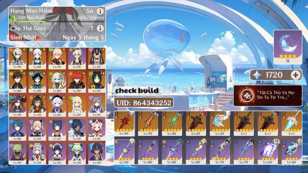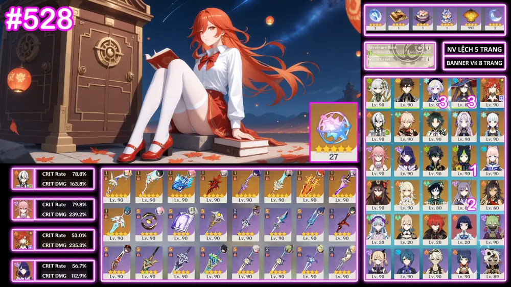 SIÊU PHẨM CHO AE ĐAM MÊ HỆ BĂNG : WRIO C4R1 - AYAKA C3R1 SKIN - GANYU C3R1 SKIN - EULA C3R1 - SHENHE C2R1 SKIN - YELAN SKIN - CITLALI C2 - NEUVILETTE C1R1 KÈM RẤT NHIỀU CHAR TRẤN HOT NHẤT META BUIL CỰC KHỎE CÂN ALL CONTENT