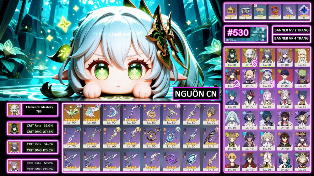 NAHIDA C6 TRẤN + NEFER + LAUMA + NGUỒN CN VIP