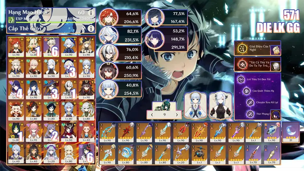 SIÊU PHẨM QUÁ NGON : EI C4R1 + ARLEC C1R1 + XILONEN C1 + VENTI R1 + HUTAO R1 + MAVUIKA R1 + FU R1 + AYAKA R1 SKIN + SHENHE SKIN + KAZUHA R1 + GANYU R1 + NHIỀU CHAR VIPP ( DIE GG )