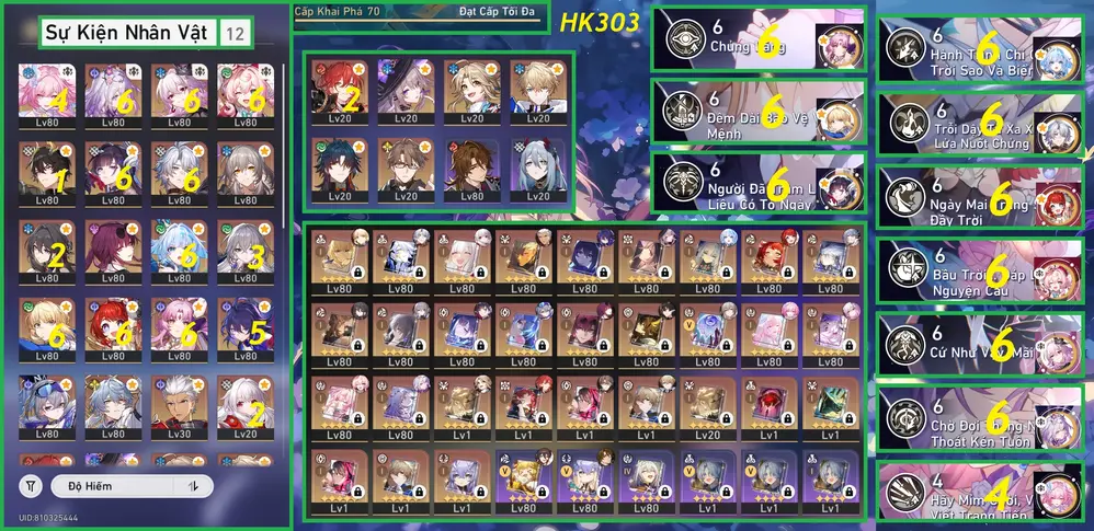 SIÊU PHẨM NGUỒN CN: 9 Char E6S1 - 17 Trấn - Full Cas dát kim cương - Full Phainon dát kim cương - Cas E6S1 - E9 E6S1 - Hyacine E6S1 - Hysilen E6S1 - Phainon E6S1 - Cerydra E6S1 - Tri E6S1 - Fuxuan E6S1 - Saber E6S1 - Cyrene E4S1